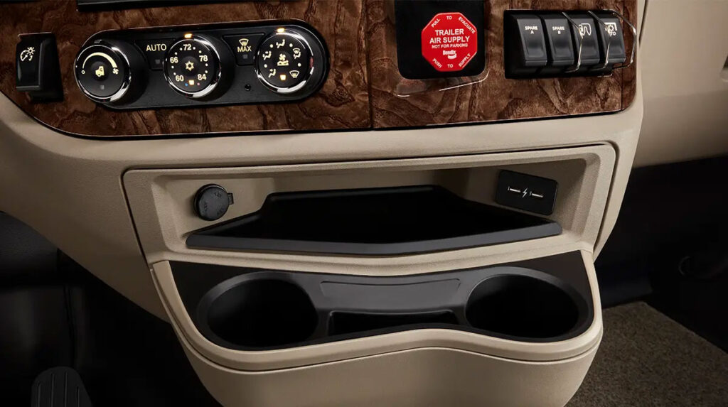 La tecnología también juega un papel importante en el interior del 589. Sistemas como el SmartNav con navegación integrada, controles de clima automáticos y conectividad para dispositivos móviles están disponibles para mejorar la experiencia de conducción. Además, características como el sistema de sonido premium, tomas USB y enchufes de corriente alterna permiten al conductor mantenerse conectado y entretenido durante sus viajes. En resumen, el Peterbilt 589 2025 ofrece un entorno interior que equilibra tradición y modernidad, diseñado para satisfacer las necesidades de los profesionales del transporte actual.