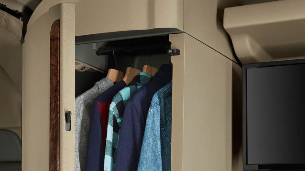 En las versiones con dormitorio, el Peterbilt 589 ofrece espacios amplios y bien equipados para el descanso del conductor. El dormitorio incluye una cama de tamaño completo con colchón de espuma de alta densidad, iluminación LED ambiental, y opciones de almacenamiento inteligente como armarios y compartimentos bajo la cama. Algunas configuraciones avanzadas, como la ARI Legacy II RBUB Sleeper de 120 pulgadas, incorporan comodidades adicionales como microondas, refrigerador de dos puertas, sistema de entretenimiento con televisión de alta definición y baño completo con ducha y sanitario tipo cassette.