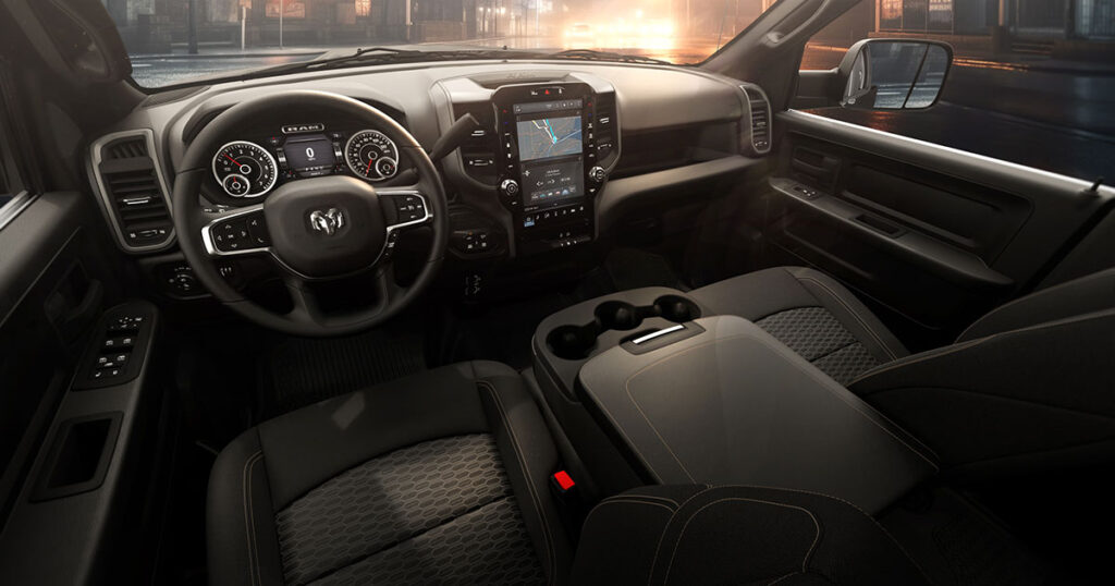 El interior de la Ram Heavy Duty 2026 confirma que el confort ya no es un lujo reservado a los vehículos de uso personal. La cabina ha sido diseñada como un verdadero espacio de trabajo y descanso, con materiales resistentes pero bien acabados y una ergonomía pensada para largas jornadas.
