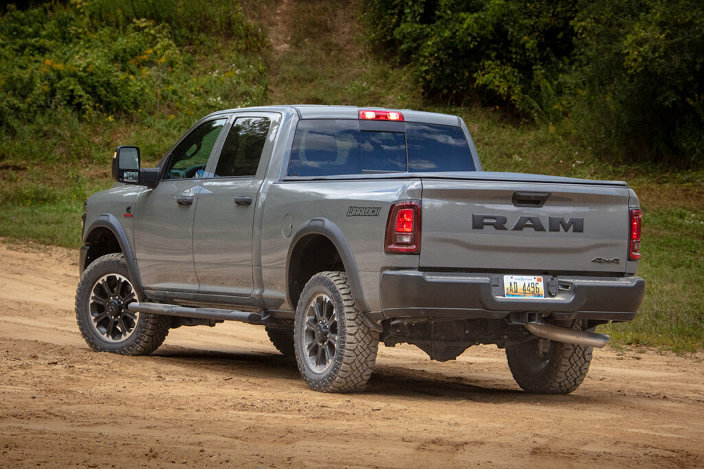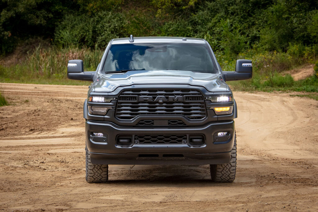 Los guardafangos pronunciados, el capó elevado y las líneas rectas transmiten una sensación clara de solidez estructural. Ram ha trabajado en pequeños refinamientos que no buscan suavizar su apariencia, sino hacerla más funcional. Las versiones orientadas al trabajo extremo destacan por paragolpes reforzados, puntos de anclaje visibles y configuraciones pensadas para remolque y uso intensivo.