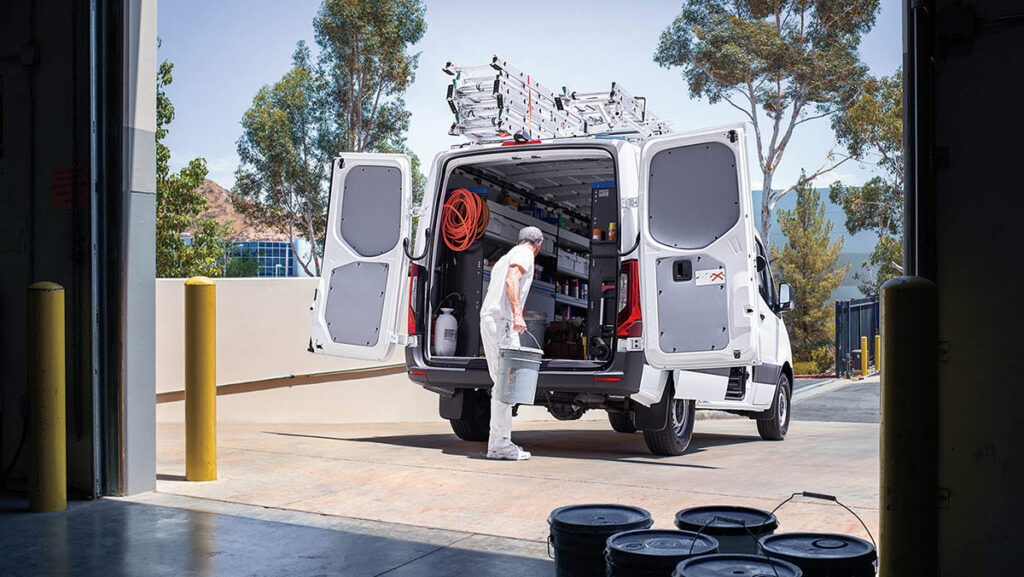 La Sprinter está disponible en múltiples longitudes, alturas de techo y configuraciones de carrocería, lo que permite adaptarla a casi cualquier necesidad operativa. El amplio portón trasero y las puertas laterales facilitan la carga y descarga, optimizando tiempos en rutas de reparto intensivas. Cada elemento del diseño responde a un enfoque práctico, pensado para el trabajo diario.